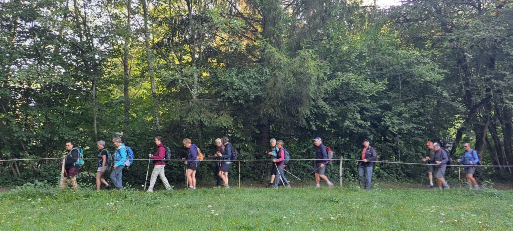 Belle matinée de partage. Belle matinée de randonnée, où nous avons pu admirer les hauteurs sud et est de Thônes, le massif de la Tournette, la montagne de Sulens et bien d’autres crêtes et monts connus et parcourus par nombre d’entre nous. Un peu d’insouciance (conformément au dicton du club) ont même fait oublier à certains leurs bâtons de marche, vite retrouvés par le groupe !