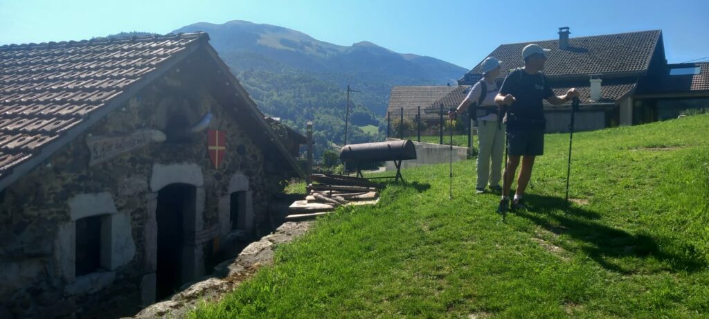 Nous poursuivons notre chemin, puis quittons la route pour emprunter une partie plus pentue sur une sente à travers champ et rejoignons une ferme, point sommital de la matinée, où le propriétaire est heureux de partager quelques échanges car les visites en ce lieu sont rares !