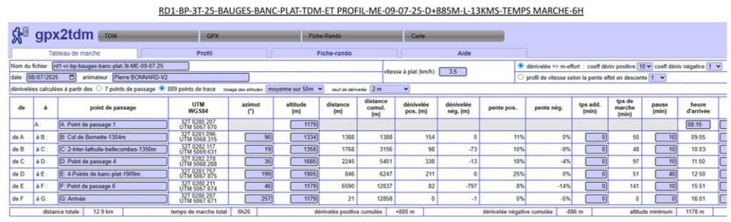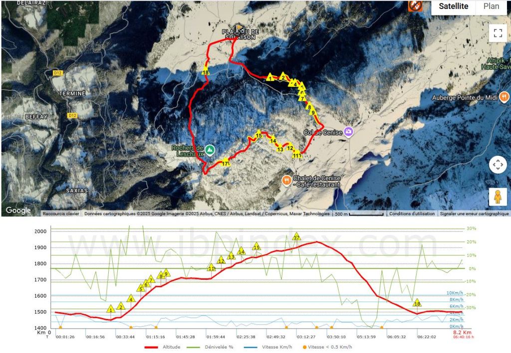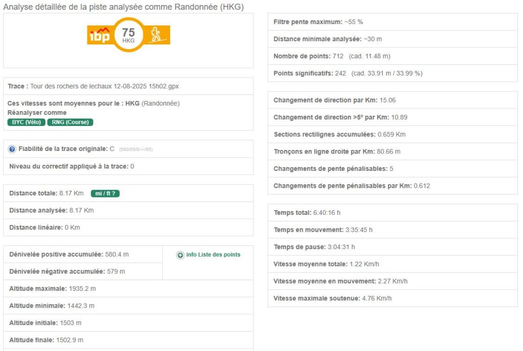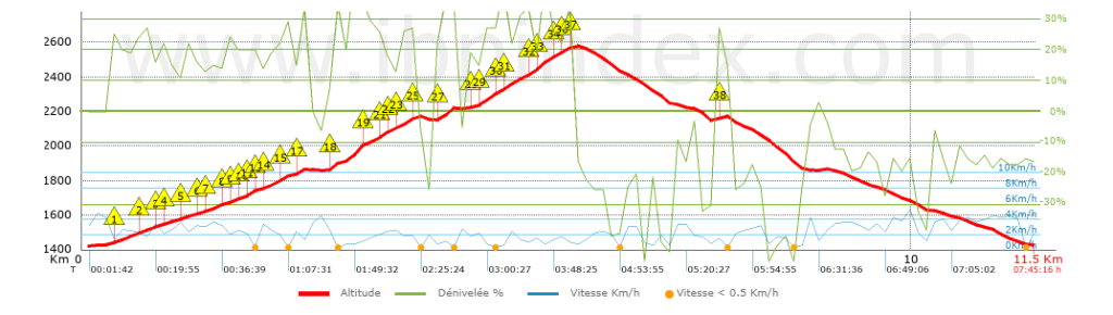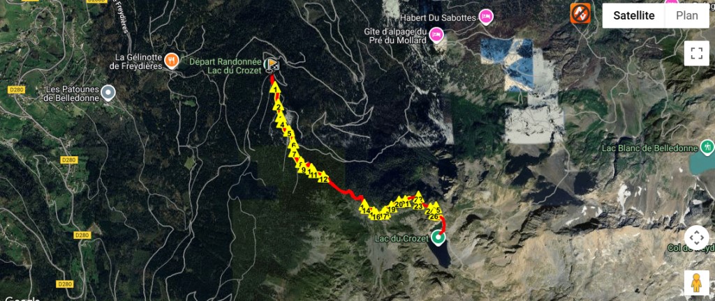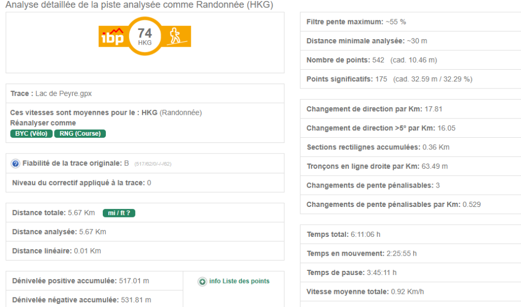 Le bilan chiffré, au choix ! 5.67 kms et 517 m de dénivelés pour le Lac de Peyre ou 6,11 kms et 632m de dénivelés en poursuivant jusqu’au col de Balafrasse.