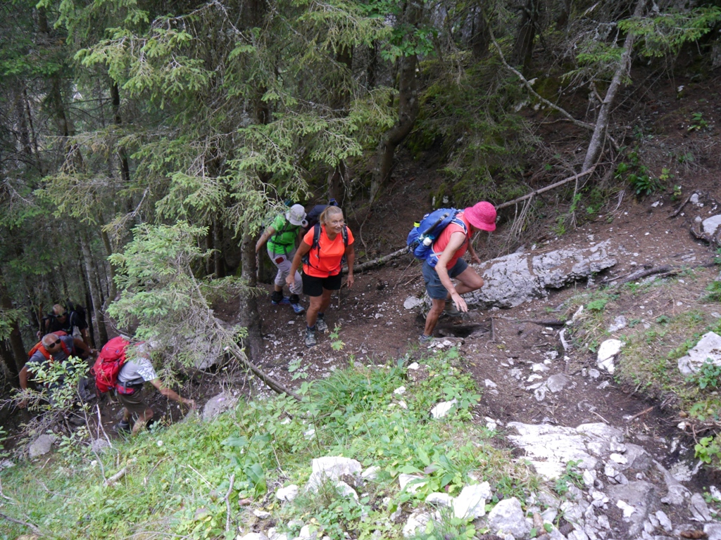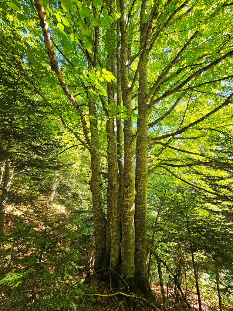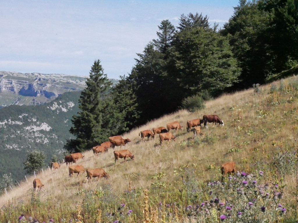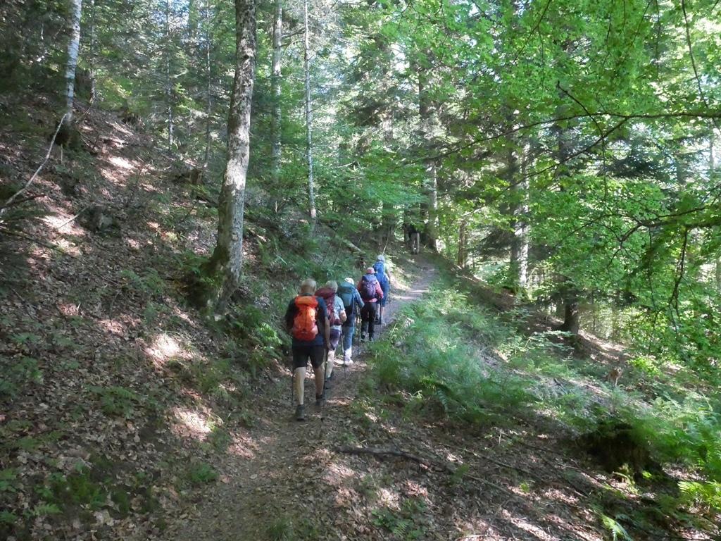 Le calme nous entoure et nous allons le conforter par une première partie de matinée, jusqu’à 10h30 environ, en zone boisée dans un silence quasi monacal ! Chacun est dans ses pensées, le rythme est régulier, la douceur de la température est même accentuée par une fraîcheur certaine au passage de « La Glacière », grotte à 1530m.