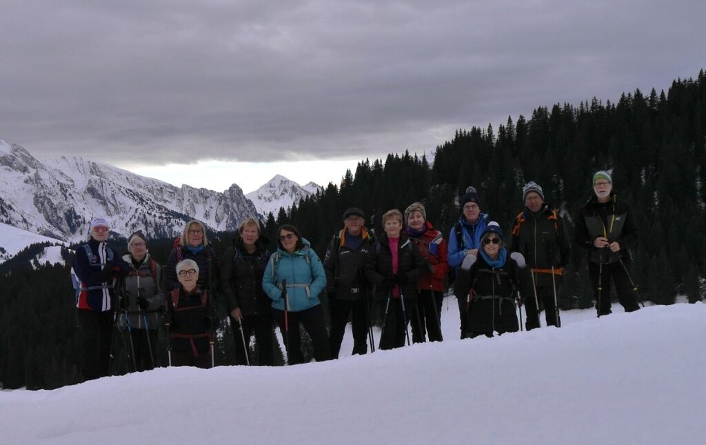 Pour cette dernière randonnée à la demi-journée de l’année, ce ne sont pas moins de 13 randonneurs qui se retrouvent au col de la Croix Fry pour un circuit de 6.5kms et 240m de dénivelés.