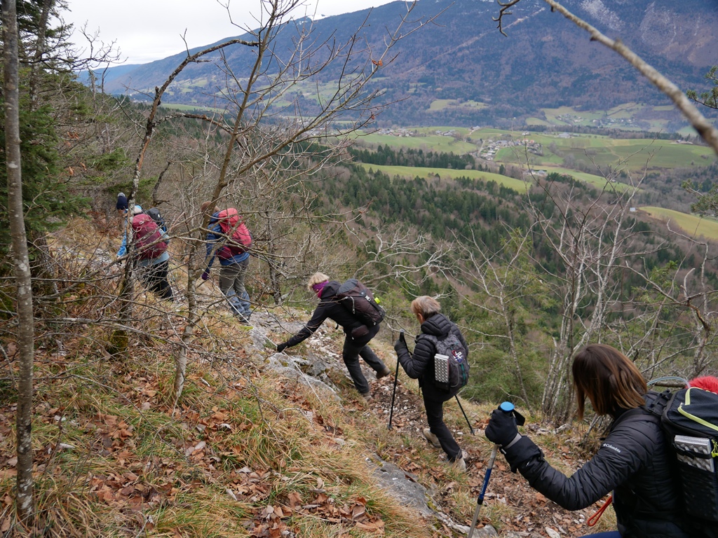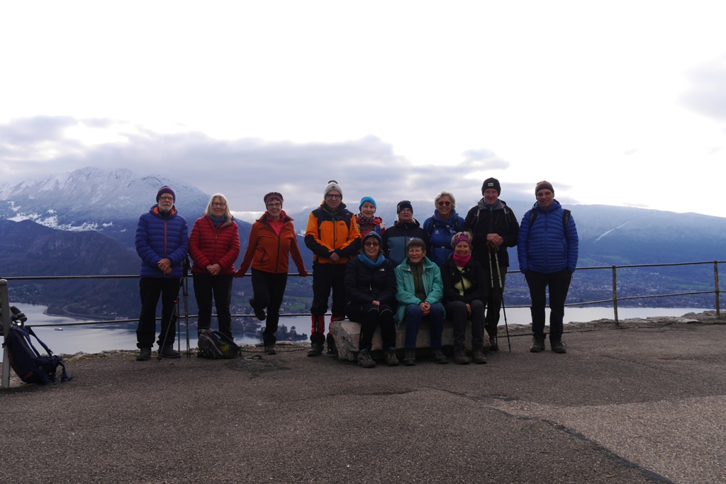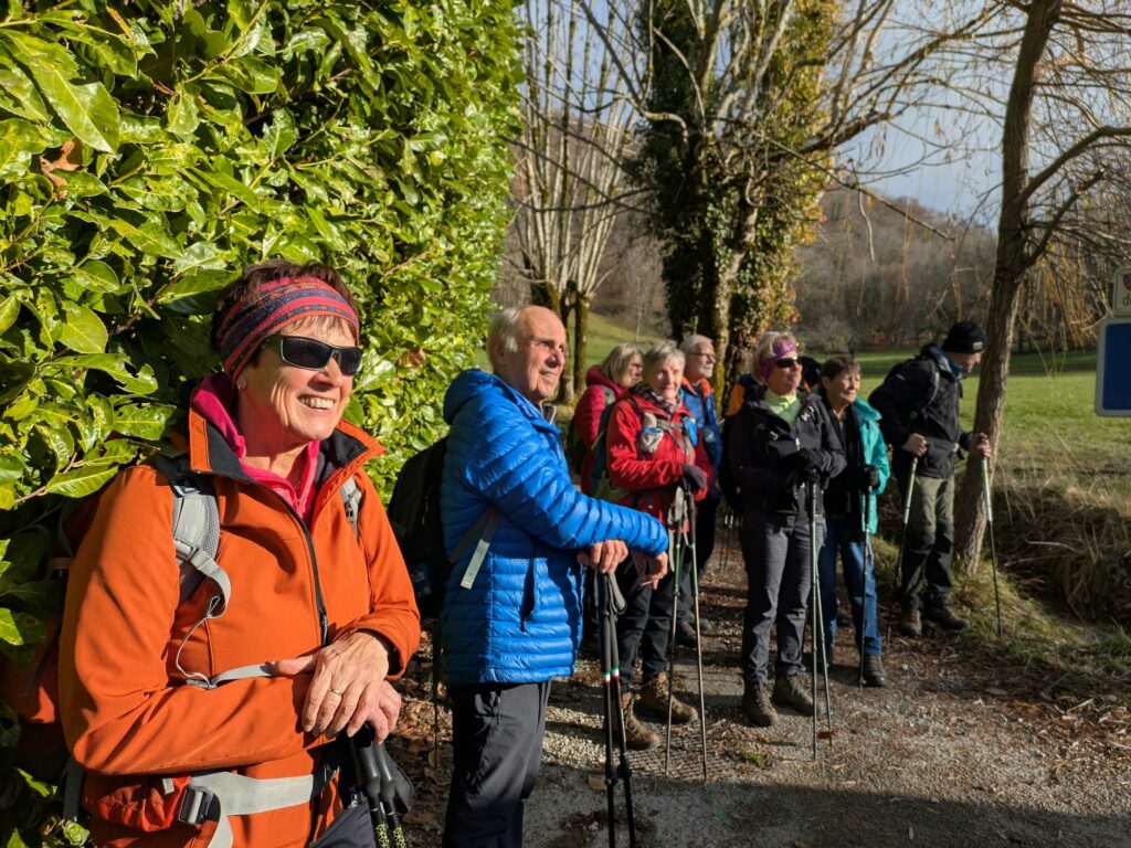 Belle matinée de partage. Belle matinée de randonnée, où nous avons pu admirer les hauteurs sud et est de Thônes, le massif de la Tournette, la montagne de Sulens et bien d’autres crêtes et monts connus et parcourus par nombre d’entre nous. Un peu d’insouciance (conformément au dicton du club) ont même fait oublier à certains leurs bâtons de marche, vite retrouvés par le groupe !