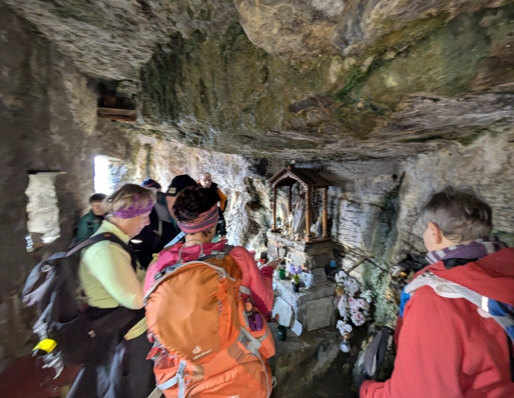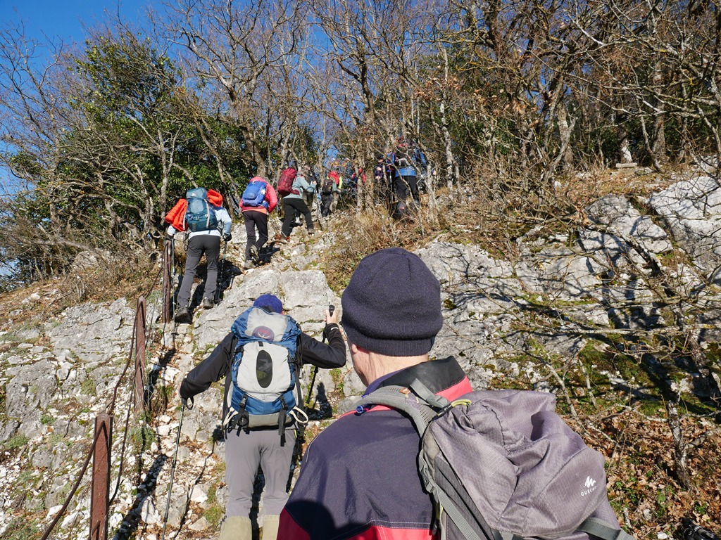 Le calme nous entoure et nous allons le conforter par une première partie de matinée, jusqu’à 10h30 environ, en zone boisée dans un silence quasi monacal ! Chacun est dans ses pensées, le rythme est régulier, la douceur de la température est même accentuée par une fraîcheur certaine au passage de « La Glacière », grotte à 1530m.