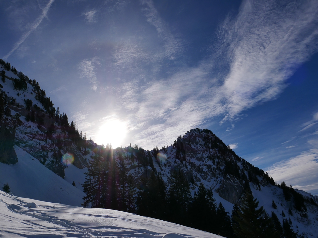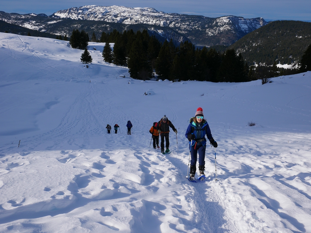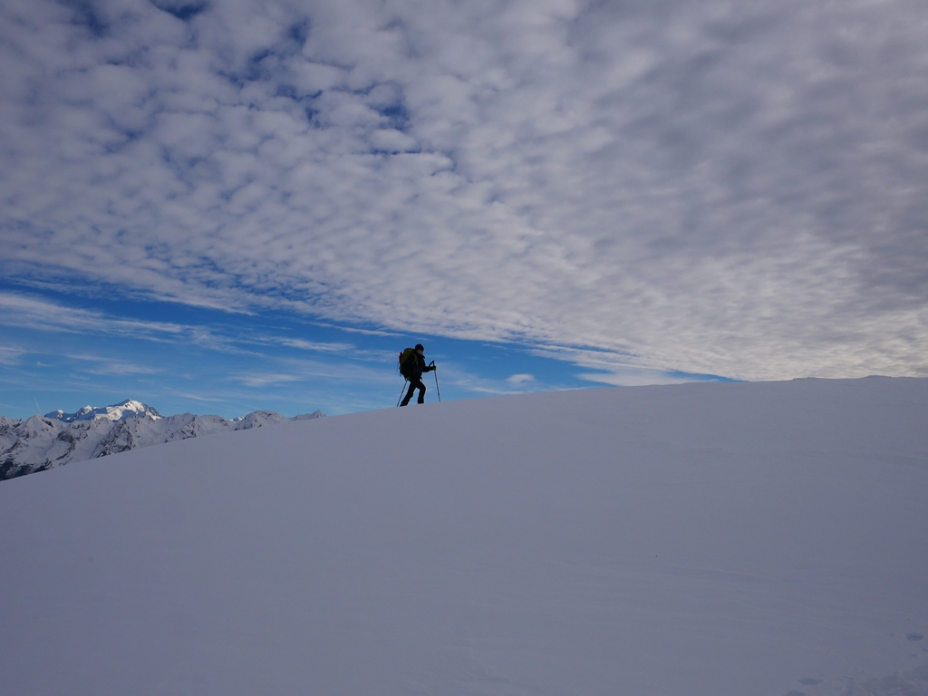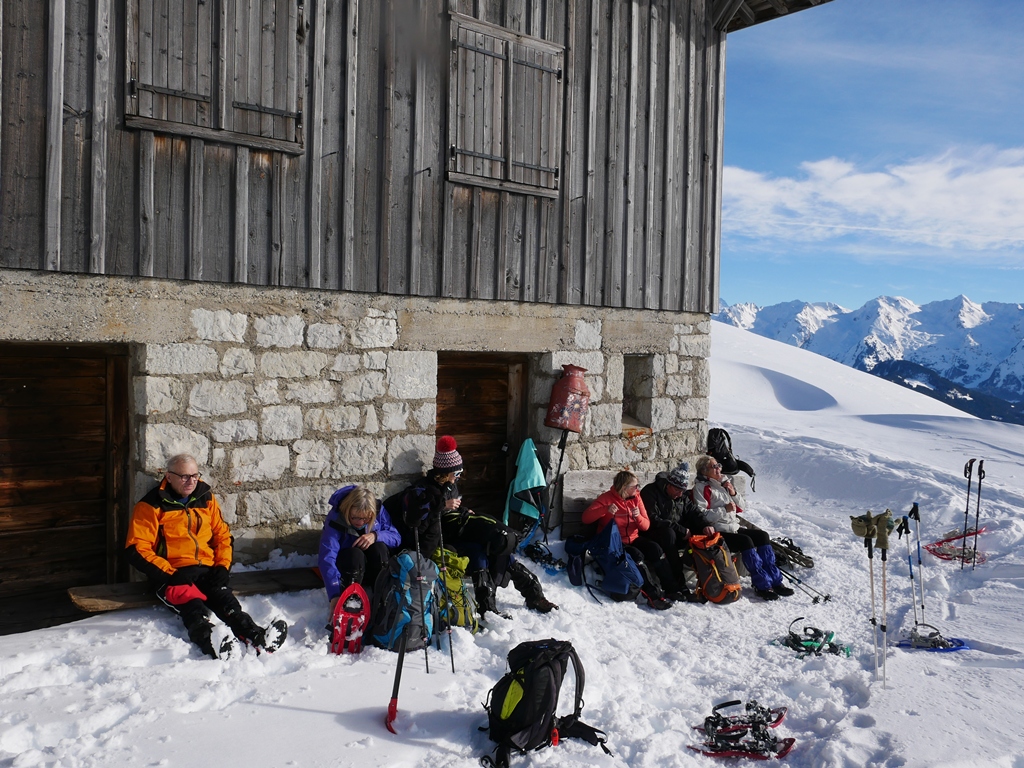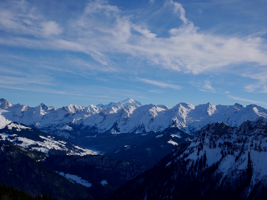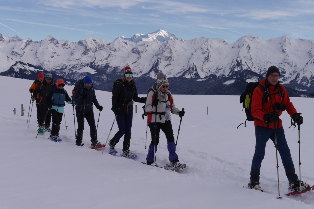 Une bien belle journée, une de plus. Quel plaisir de retrouver ce panorama enneigé : Massif des Aravis, chaîne du Mont-Blanc, envers de la Tournette, Sous-Dine, Rochers de Leschaux… tout au long de la journée nous avons attaché notre regard à la beauté du paysage.