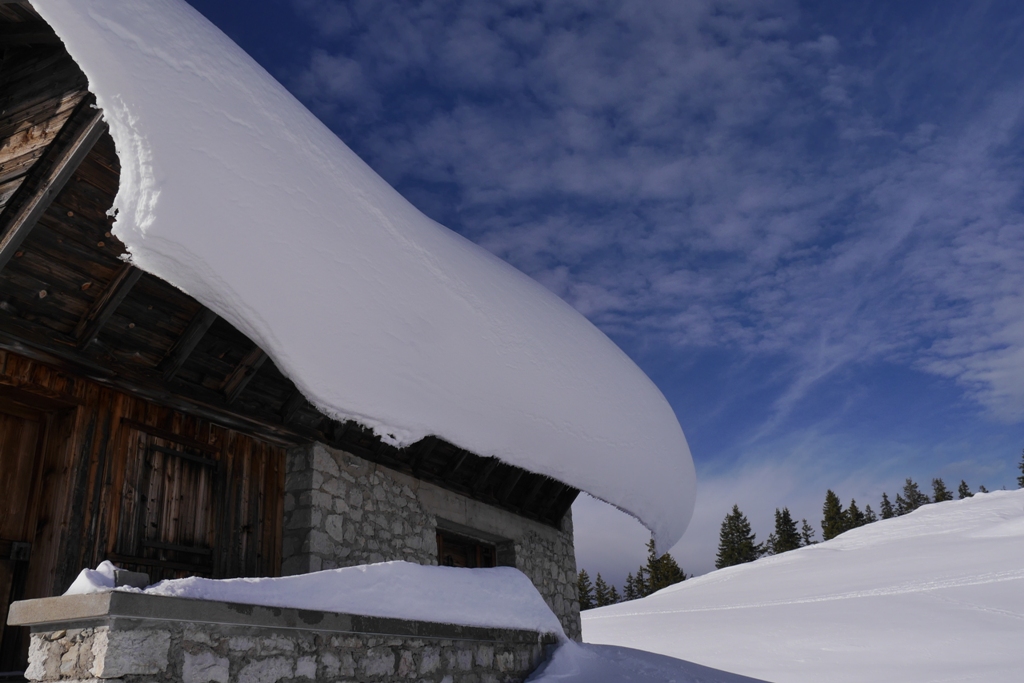 Le soleil est au rendez-vous (comme au matin d’Austerlitz, pour les férus d’histoire !), c’est un soleil suffisamment généreux pour faire une pause agréable adossés à l’un des chalets et assis sur des bancs de fortune.